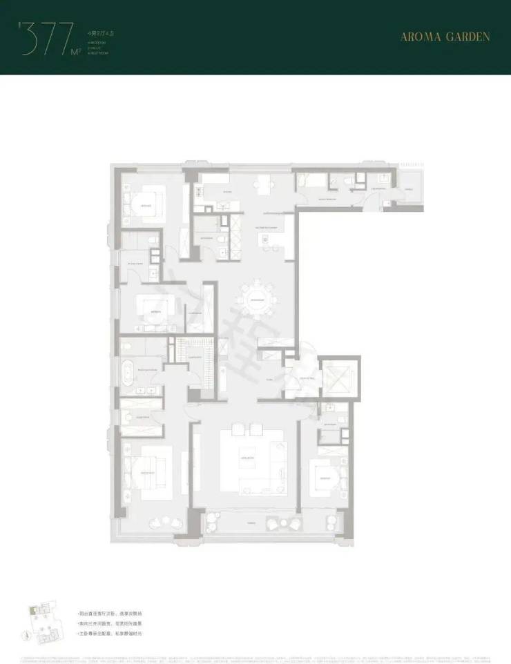 四个卧室均配备独立卫浴,隐私性与尊崇感拉满。