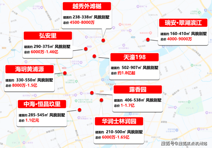 上海部分风貌别墅价格示意图