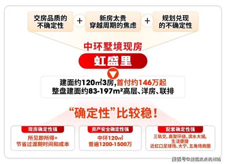 虹口虹盛里,便是当下“确定性”尤为靠谱的选择——当下首付最低15%,首付仅约146万起就能在中环旁入手建面约120㎡的3房墅境现房!