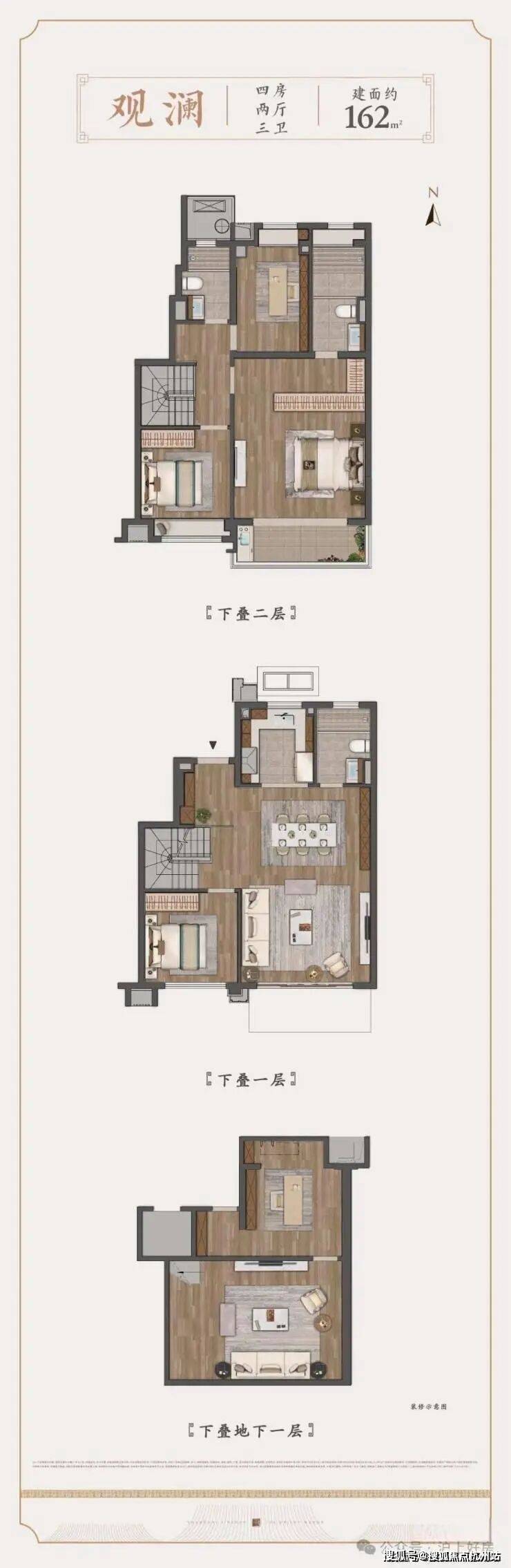 户型方面,建发观唐府凸显两个优势:设计优秀以及户型种类多,选择面大。项目推出户型为约180㎡4房高层、约147-175㎡叠墅。