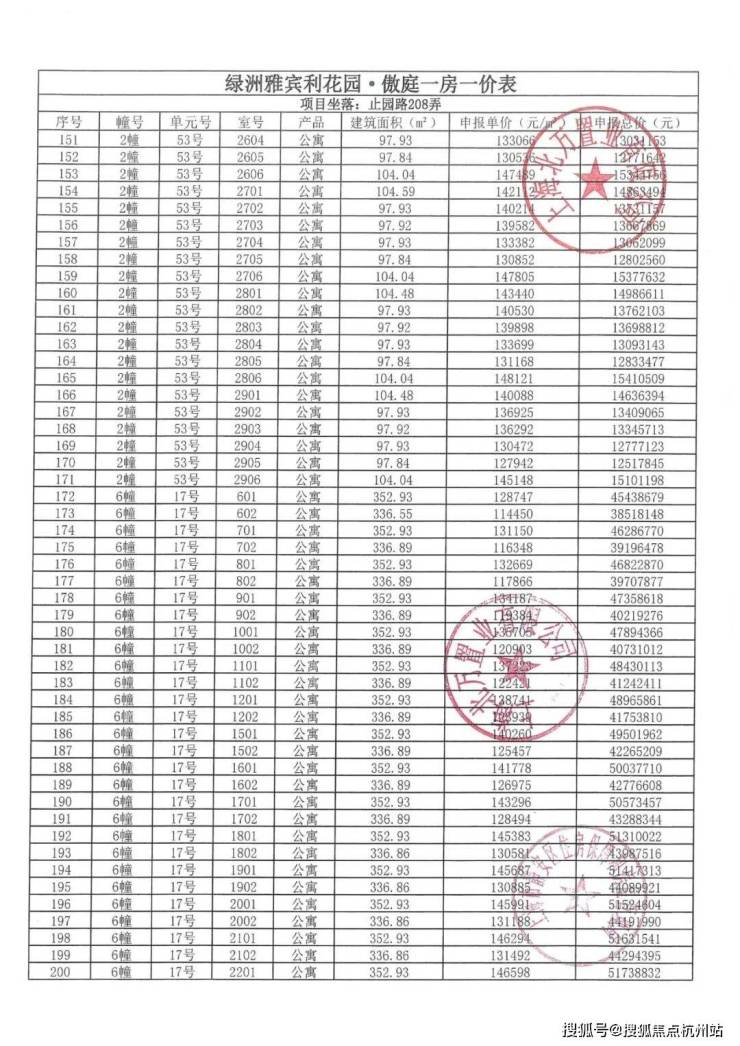 一房一价表发布