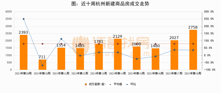【杭州成交周报】第48周新房成交2758套,二手房2150套,涨价房源324套