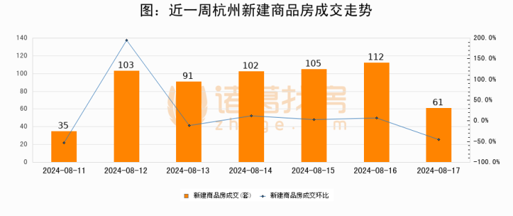 【杭州成交日报】08月17日新房成交61套、二手房173套;涨价房源51套