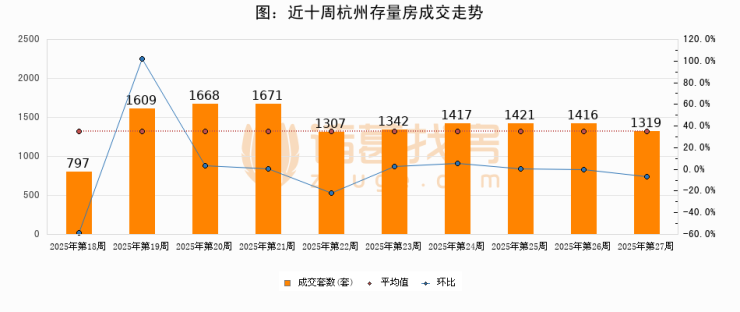 【杭州成交周报】第27周新房成交1190套,二手房1319套,涨价房源192套
