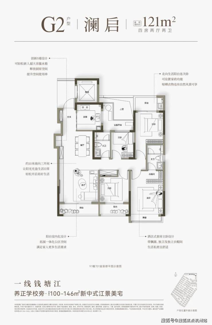 一线江景:坐落于钱塘江头排,直线距离钱塘江仅约 200 米,坐拥一线 C 形湾江景资源。