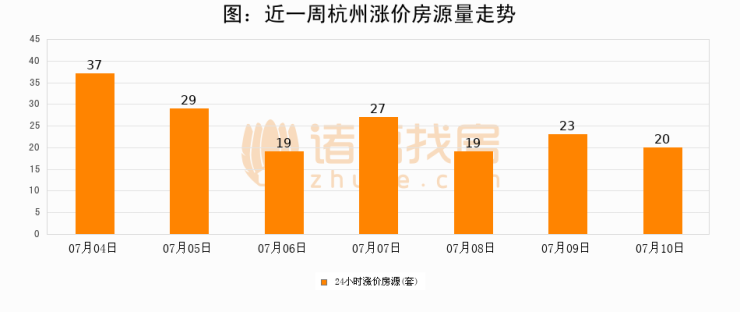根据诸葛找房数据显示,杭州24小时涨价房源量为20套,较07月09日减少3套,环比下降13%。与此同时,涨价房源占比小幅回落,对于购房者来说是一个入市窗口期,购房者可抓住时机入市。