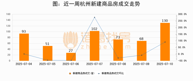【杭州成交日报】07月10日新房成交130套、二手房197套;涨价房源20套