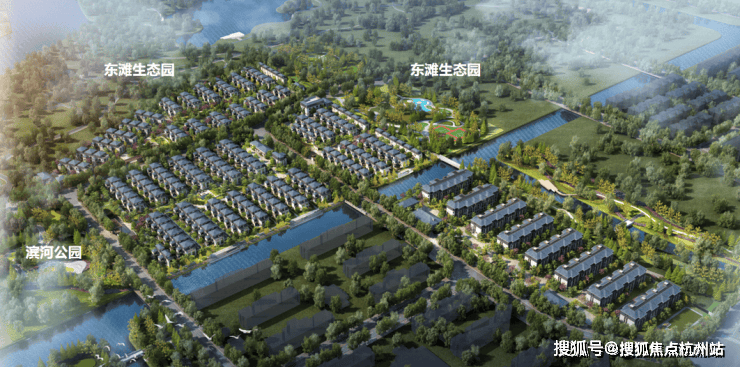 东北两面有东滩生态园,西面是滨河公园,周边水光灵动,归野自然。