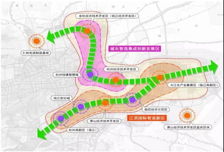 而随着大湾区站路的落定,“城东智造大走廊”也被升格为“杭州江滨智造新区”。这同时也是浙江省为支持大湾区建设搭建的“十大高能级平台”中排名排名前列的平台。