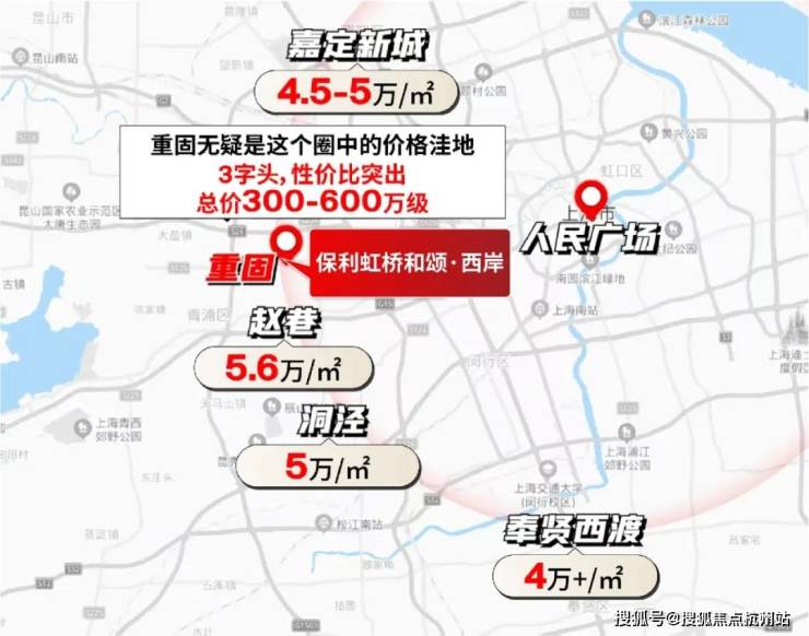 若以市中心为圆心,重固与赵巷、洞泾处于同一半径范围内,但后者房价已达5-5.6万/㎡,而重固仅3字头。