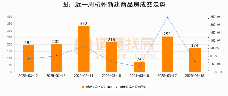 【杭州成交日报】03月18日新房成交174套、二手房342套;涨价房源97套