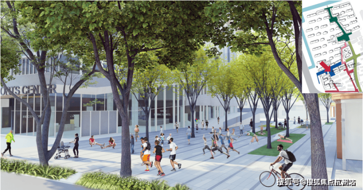 红线范围内室外舞蹈、天安1号二期售楼处电话:400-998-9694 武术广场等面积为2498㎡,可作为老年人室外活动场地。社区红线范围为主要分布在养老公寓和养老院屋顶和室外,该部分面积为1360㎡;市政绿化带中也设置了老年人活动场地,共计1950㎡。