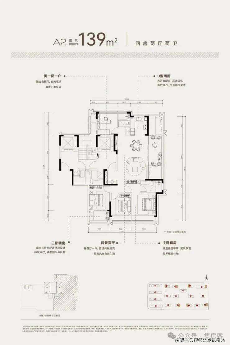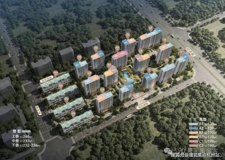 在售户型面积:高层户型建面约 139㎡、170㎡、190㎡,叠墅户型建面约 232-260㎡。