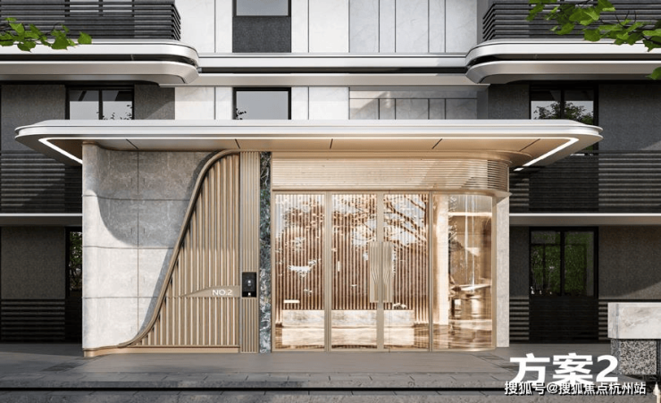 墙面奢华石材:大面积玻璃幕墙结合铜质镶边工艺