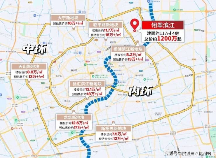 中心城区的土拍价格直线上升, 虹口临平路地块的拍出楼板价约11.7万/㎡、徐汇滨江两幅地块楼板价约12.6-13.1万/㎡...