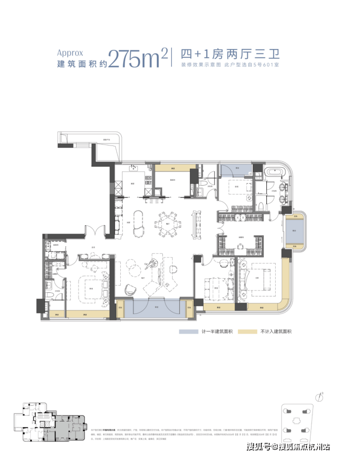 建面约275㎡4+1 房户型,以约22 米南向极致面宽,实现了超越市面 400㎡级大平层的采光尺度,约 80㎡奢阔餐客通厅搭配 7.2 米客厅开间,形成无界通透的社交聚场,既容得下三餐四季的烟火日常,也撑得起家族宴请的排场体面。