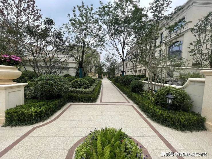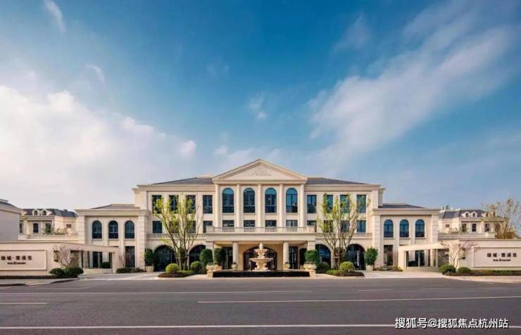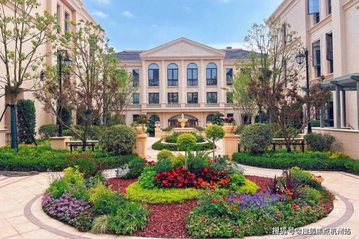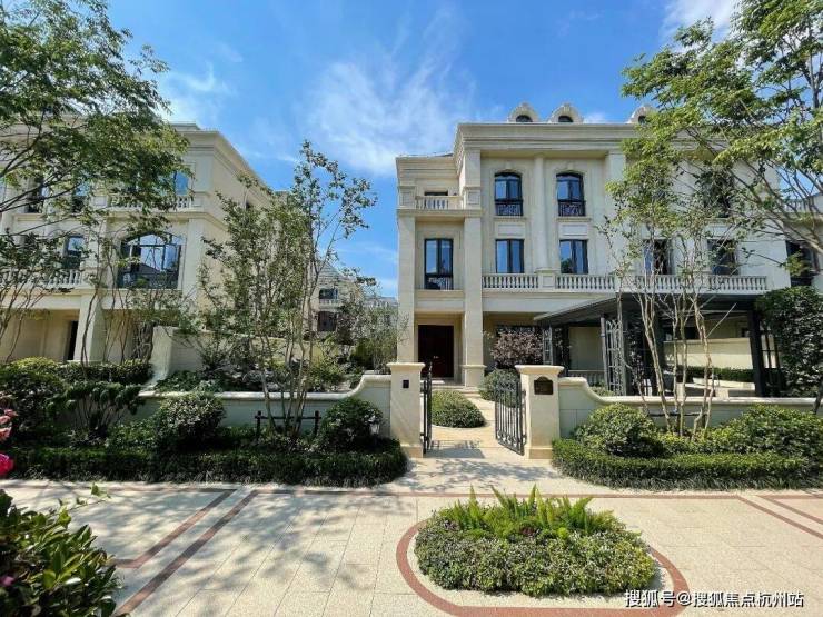 建筑风格:绿城玫瑰园系法式建筑,全石材干挂立面,复刻枫丹白露宫廊柱与山花元素,对称几何布局彰显尊贵气质。