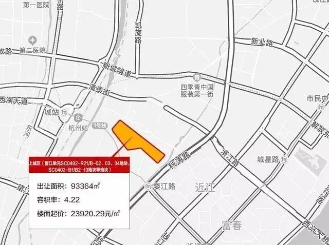 2019年7月30日,香港新世界以979187.0万元总价竞得杭政储出[2019]41号望江单元SC等商住地块,楼面价24859.65元/平方米,溢价率3.9%。该地块位于上城区望江新城核心区,由若干个地块组成,地上建筑面积近40万平方米,地下建筑面积约6万平方米, 用途包括住宅、商业、社会停车场库等。地块限制所建商品住房毛坯销售均价不高于63800元/平方米,且毛坯销售较高单价不高于70180元/平方米。如实施装修销售的,装修价格不高于6000元/平方米。