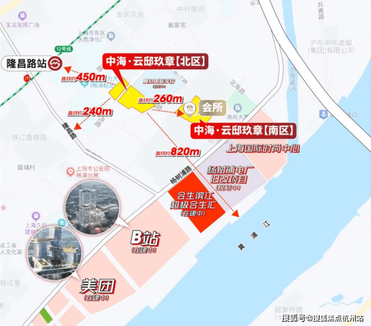 南面,美团、B站等互联网大厂在项目南面临江一字排开,还有对位前滩的高端商业在建(合生汇等),对位徐汇滨江的休闲配套(公共绿地约48.46公顷,滨江跑道、步道、骑行道现已全线贯通)!