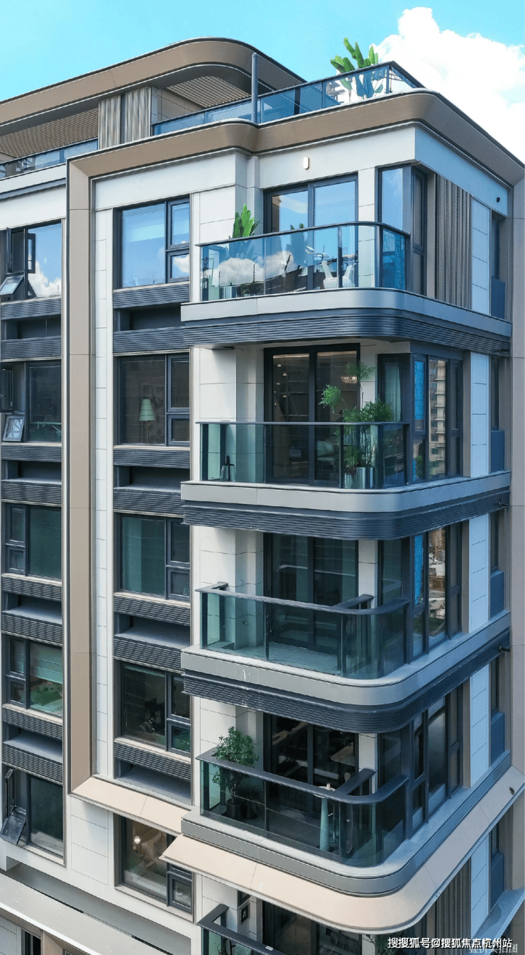 · 静奢曲线立面:转译武康大楼建筑符号,微弧阳台,首三层石材基座,金属线条 + 玻璃塔冠。