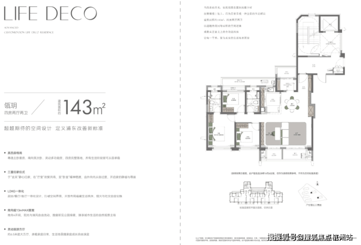 · 建面约 141㎡四房:三开间朝南、横厅 LDKB 一体化,三阳台 + 多飘窗,主卧套房带衣帽间,海派精工细节拉满。