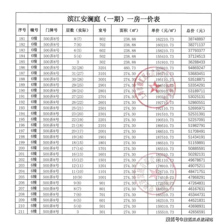 【安澜上海】一房一价表: