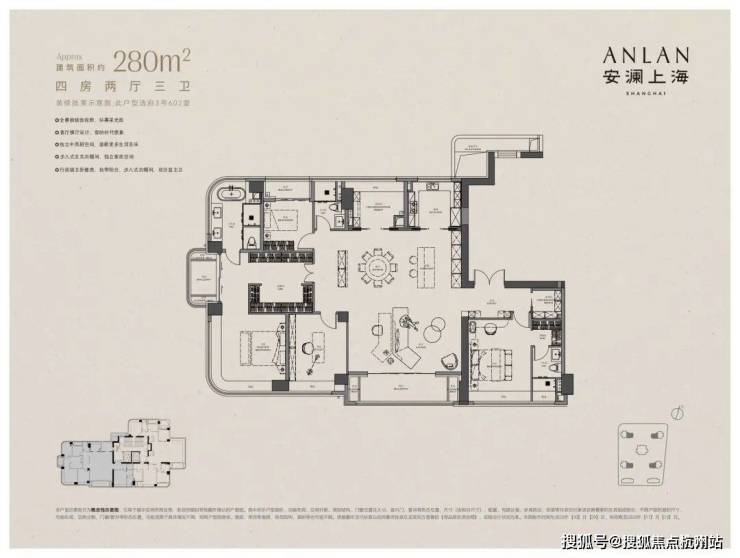 建面约280㎡,总价预计4300-5600万,折算单价15.3-20万元/㎡