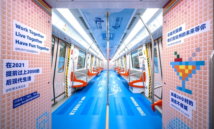 这是融创打造的“热爱城市 共建城市”地铁专列,专门来为杭城人送上一大波“Color Box美好城市体验包”福利。