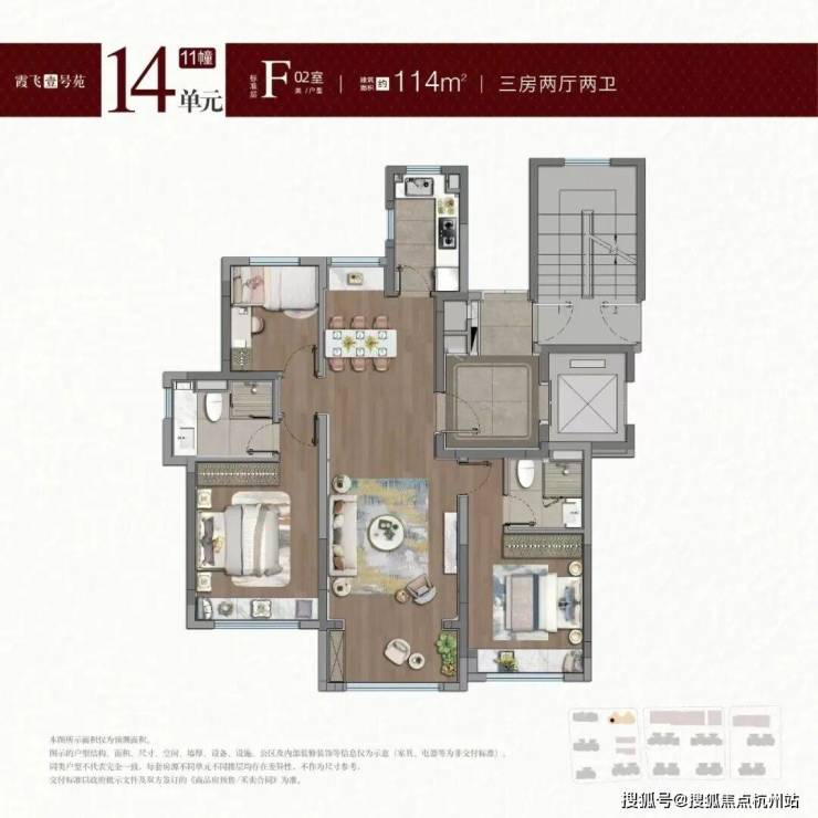 建面约114平㎡3房2卫户型图: