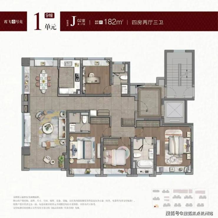 建面约182平㎡4房3卫户型图: