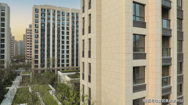 宝华紫薇之星采用现代的建筑风格,外立面质感很特别,采用浅色系全石材干挂,巴西都伯斯金麻、宏宇金麻搭配铝板线条,看盘当天天气不错,在阳光照耀下,立面闪烁着温润光泽。