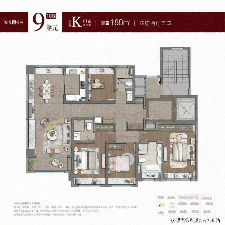 建面约188平㎡4房3卫户型图: