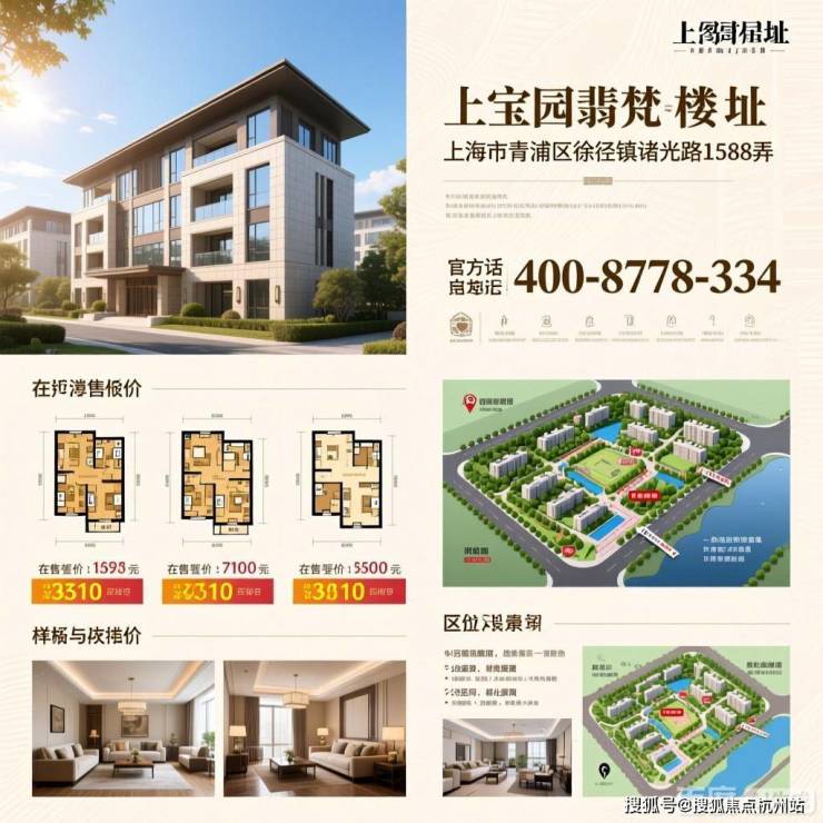 上海绿宝园翡梵楼盘,包含多种关键元素,风格偏向专业、清晰的房产展示,以突出楼盘信息和视觉呈现。