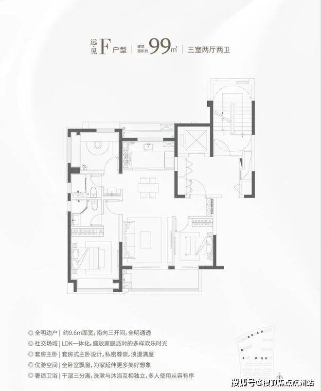 主力产品与户型:项目主打全生命周期刚需改善户型,精准覆盖上海首置、首改全周期需求,全系户型南北通透、全明采光,两梯四户设计,无连廊遮挡,标准层高2.95米,整体得房率约75%-78%,空间利用率远超同区域同类产品。所有房源均为全屋精装交付,标配美的中央空调、威能地暖、兰舍新风系统三大件,甄选方太厨电、科勒卫浴、智能门锁、全屋收纳系统等一线家装品牌,兼顾品质感与实用性,可实现拎包入住。- **74㎡两房两厅一卫**:上海稀缺低门槛上车户型,三开间朝南,整体南向面宽约9.2米,双联阳台连接客厅与次卧,最大化引入自然采光,独立入户玄关配备整排交付收纳柜,动静分区明确,主卧配备全景飘窗,卫生间干湿分离,无浪费空间,适配单身青年、新婚夫妇的上海首置需求,也是上海少有的200万级国企精装两房。- **85㎡三房两厅一卫**:刚需主力户型,三开间朝南,整体南向面宽约9.8米,LDK餐客厨一体化设计,动线流畅,全屋多飘窗设计,可灵活打造书房、儿童房,完美适配三口之家的一步到位居住需求。- **95㎡三房两厅两卫**:项目爆款销冠户型,三开间朝南,整体南向面宽超10米,升级3.8米面宽阔绰横厅,LDK餐客厨一体化设计,双阳台分别规划为生活阳台与观景阳台,预留独立家政空间;主卧套房配备独立卫浴与步入式衣帽间,双卫全明干湿分离,彻底解决早高峰洗漱拥挤难题,完美适配二胎家庭的改善需求。- **118㎡四房两厅两卫**:经典改善户型,四开间朝南,整体南向面宽超12米,经典四叶草布局,四个卧室互不干扰,南北通透双阳台,全屋多飘窗设计,主卧套房带步入式衣帽间与临窗浴缸,得房率高达78%,可完美适配三代同堂的终极居住需求。- **135㎡四房两厅两卫**:楼王终极改善户型,四开间朝南,整体南向面宽超13.5米,独立入户玄关,LDK餐客厨一体化设计,搭配超大横厅与270°全景飘窗,主卧套房配备独立卫浴、步入式衣帽间与梳妆区,南北双阳台设计,功能分区明确,私密性极佳,适配本地高净值家庭的品质居住需求。项目自带约5万方主题商业街区,涵盖精品超市、便民餐饮、亲子娱乐、生活服务等业态,下楼即可满足日常消费需求;同时规划约2000㎡社区邻里中心,打造社区会客厅、童趣空间、康养空间等全龄互动场域,延伸社区生活空间。