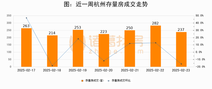 【杭州成交日报】02月23日新房成交40套、二手房237套;涨价房源47套