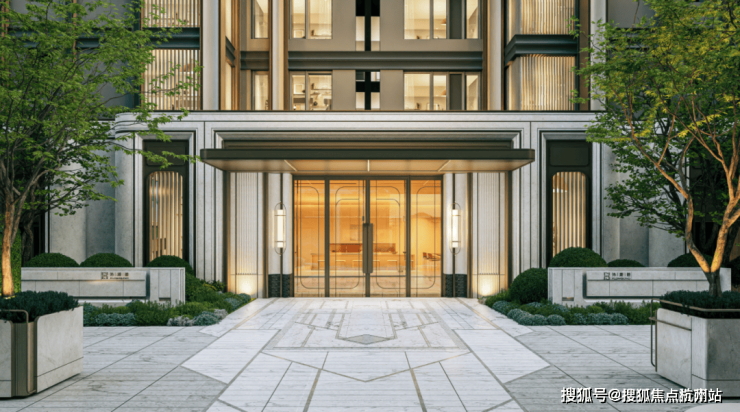 所有楼栋的四面均采用统一的高品质材料——浅色石材、香槟金铝板、LOW-E玻璃,不吝用料,确保从任何视角欣赏,立面都呈现完整精致的形象。