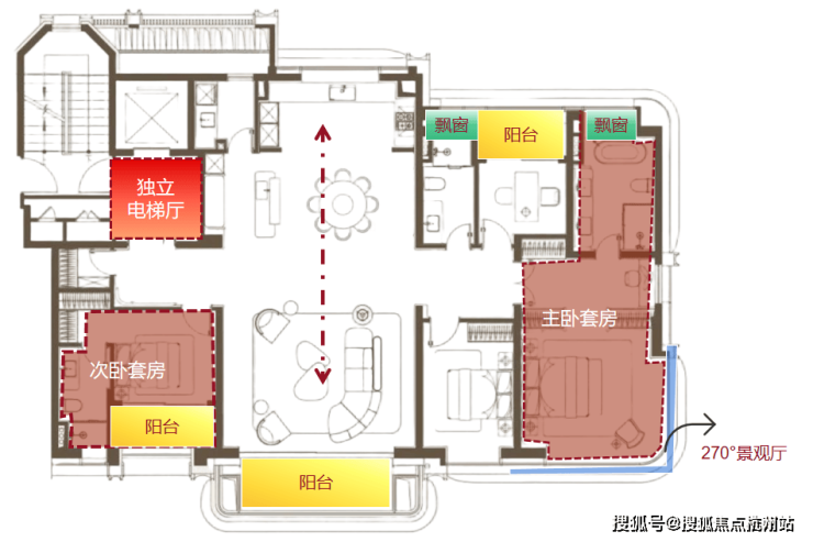 建面约220㎡户型位于5号楼楼王位置,这是一个非常出乎人意料的产品。