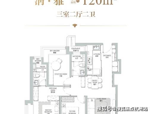 120㎡三房为成长型家庭优选,定制 LDKB 一体化宽厅,空间利用率大幅提升,270° 转角窗观景套房设计,餐客厨一体化动线流畅,主卧尊享独立衣帽间与卫浴,北向次卧可灵活改造为书房或儿童房,适配二胎家庭或三代同堂的空间需求,总价约 1350-1420 万。