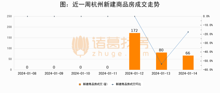 【杭州成交日报】01月14日新房成交66套、二手房160套;涨价房源129套