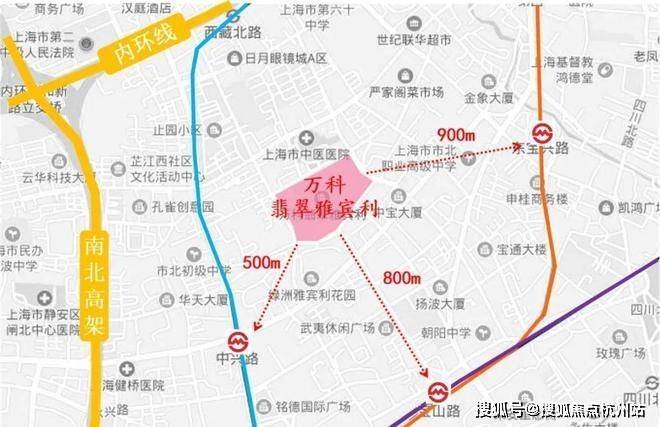 项目距离轨交8号线中兴路站仅500m,两站路即可到达人民广场 ;距离4号线宝山路站约800m,3号线东宝兴路站900米,项目1km距离内拥有3条轨交环绕,出行非常便捷。