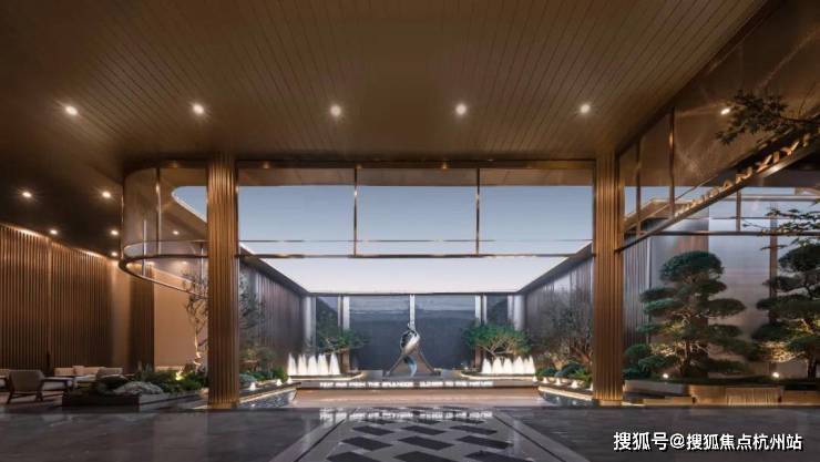 给大家秀一波静安玺樾美学示范区实景图!入口是酒店港湾式落客空间,一棵充满艺术感的造型树,蓝翡翠奢石点缀,提升整体品质感。内部是一座精致典雅的水院,艺术雕塑、喷泉水幕、造型树经典组合,仿若一座海派艺术公园~