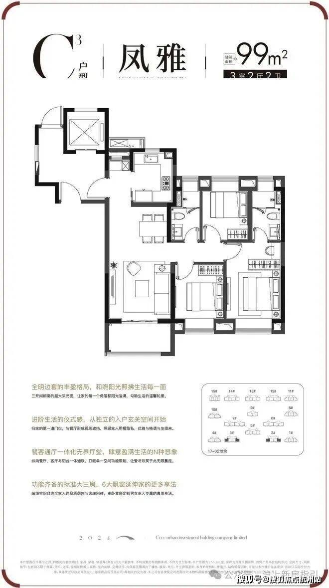中交凤启虹桥在户型设计上充分调研了上海家庭的居住需求,推出了建面约74-144㎡的三居至四居“成长型户型”,覆盖从首置到改善的不同客群。