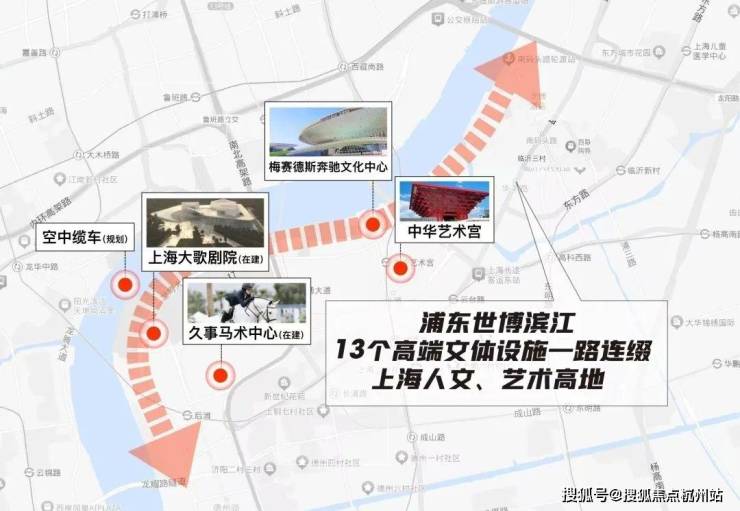 世博-后滩浓缩了全上海规格最高的文体配套,梅赛德斯奔驰文化中心、中华艺术宫、上海大歌剧院、世博展览馆、久事国际马术中心等都在这里,形成一条上海独具一格的文化艺术带。