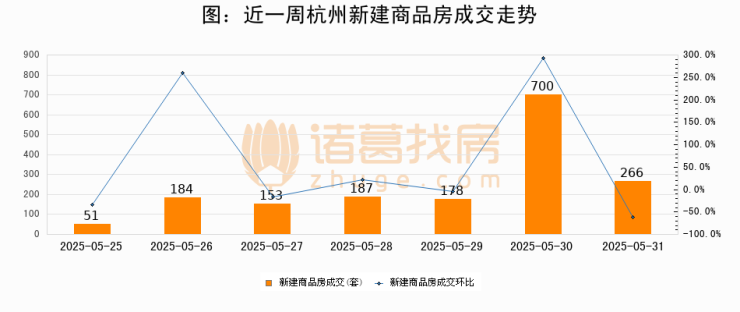 【杭州成交日报】05月31日新房成交266套、二手房32套;涨价房源19套