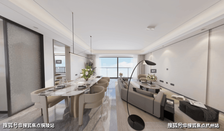 客餐厅与约7.2㎡外扩阳台自然衔接,形成一个向景观延伸的生活舞台。未来站在这里,近可感受精心雕琢的园林纹理,远可眺黄浦江、复兴岛,随手一拍,都是朋友圈的封面大片。
