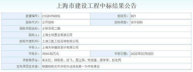 2022年2月8日,上海天华建筑设计有限公司以3994.65万元中标 士林华苑二期地块设计项目!