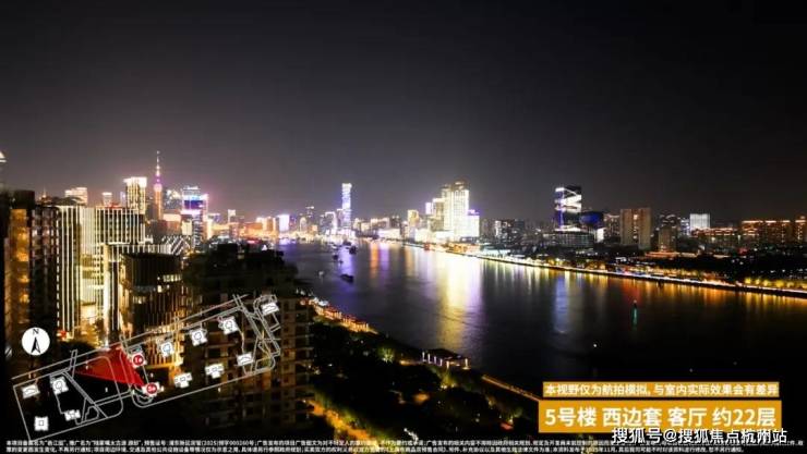 其一,滨江首排占位+占据约1.5公里黄金江岸线,定义顶豪江景天花板。