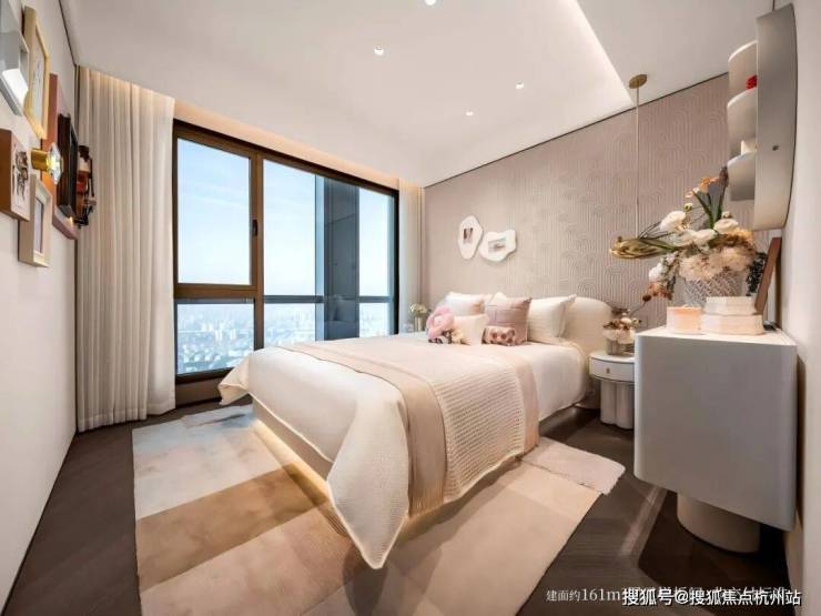 同时越级洋房161以“南向双套房”的革新性布局,为空间注入舒居的真意。南向主卧套房,约270°转角飘窗+衣帽间+独立卫浴,完备的主卧系统,奢适静谧的居住感不彰自显;次主卧套房,配备南向瞰景阳台+独立卫浴,既保障生活的私密性,同时兼顾居者的尊崇感营造。