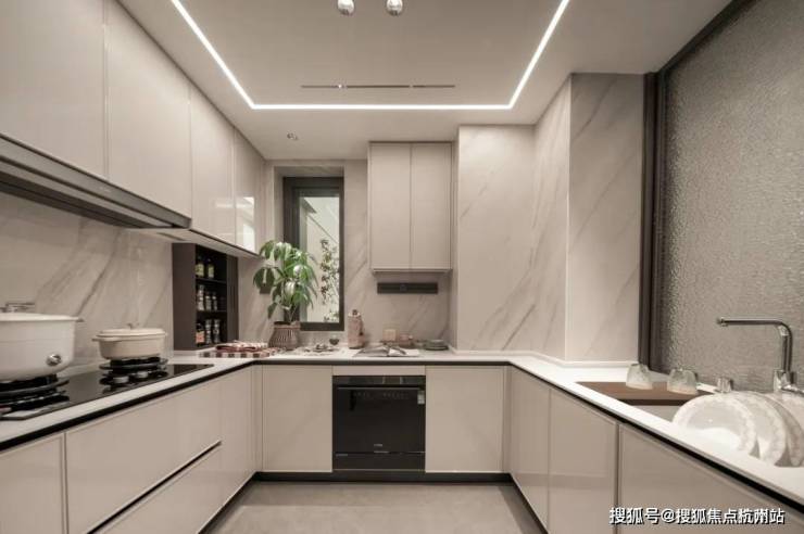 U型厨房设计, 操作台面宽敞阔绰,即便两三个人同时做饭,空间感也绰绰有余!