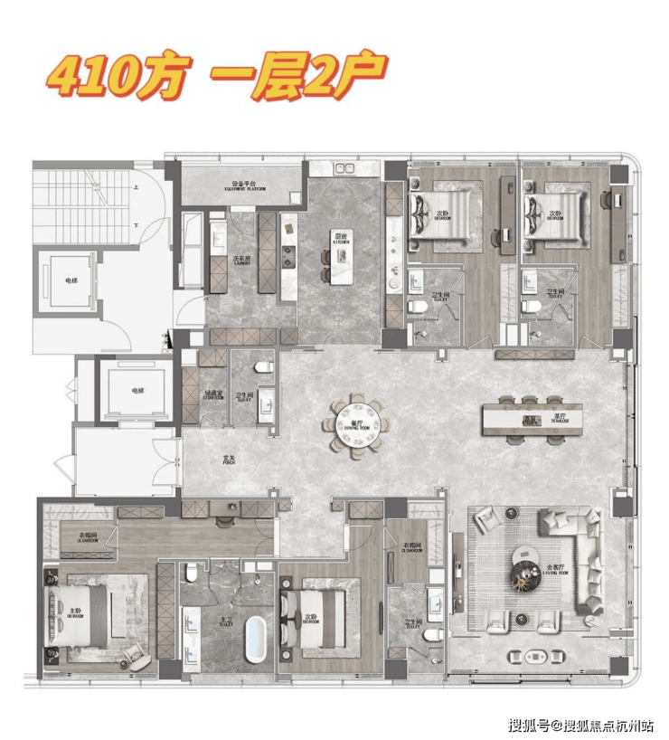 1#4#:410方,5房2厅5卫,2梯2户,总高20层,4m层高